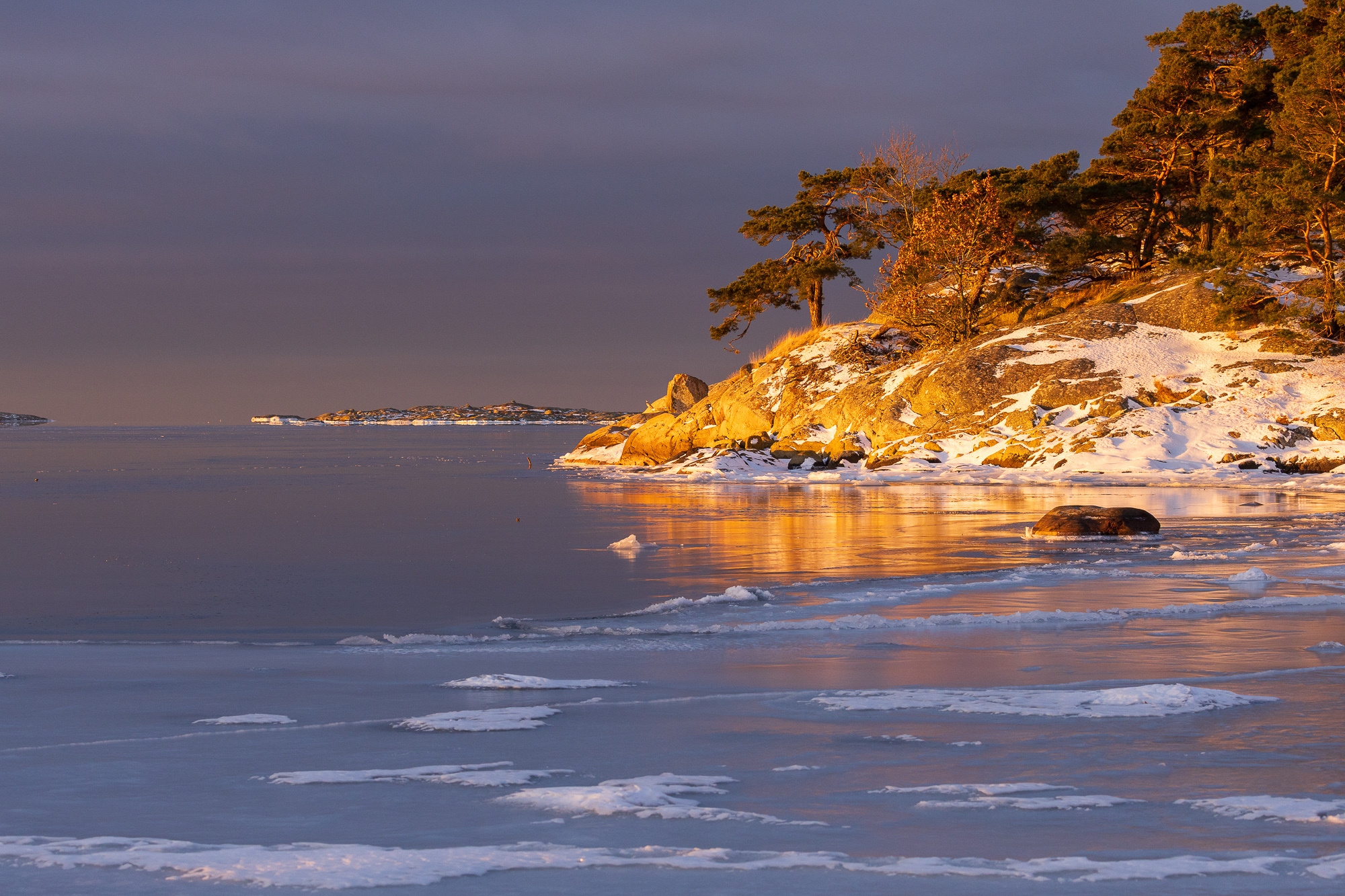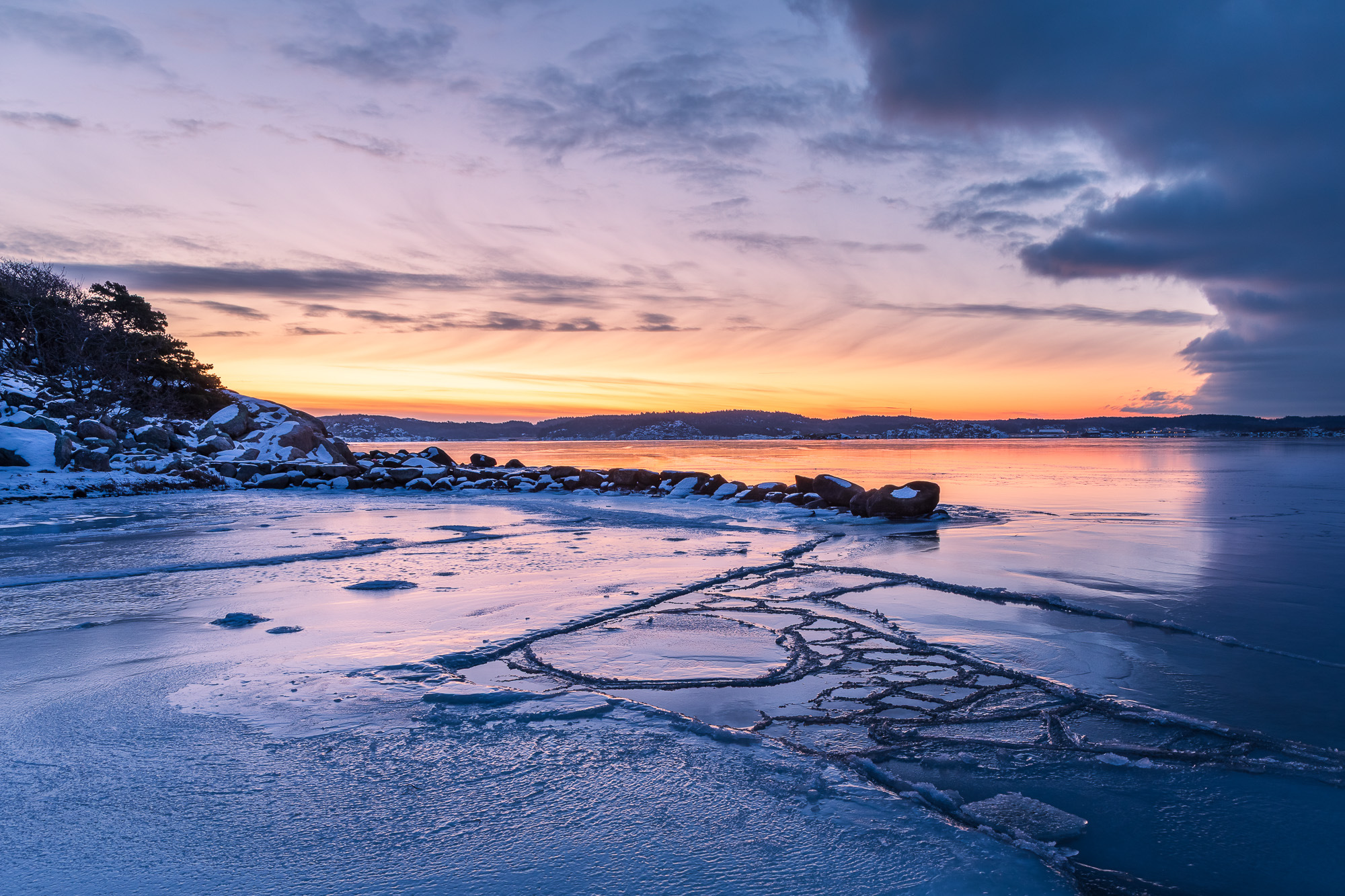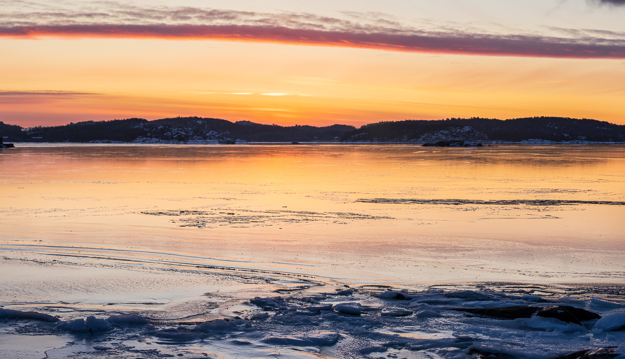 Sea ice , Särö västerskog Posted on 2026-02-182026-02-21 A Winter morning with -12 degree C , and no wind , very rare this winter in Sweden.Visited Snäckstranden in Särö. And was awarded by nature with a beautiful sunrise.Ice is now covering the complete bay as far as you can see.